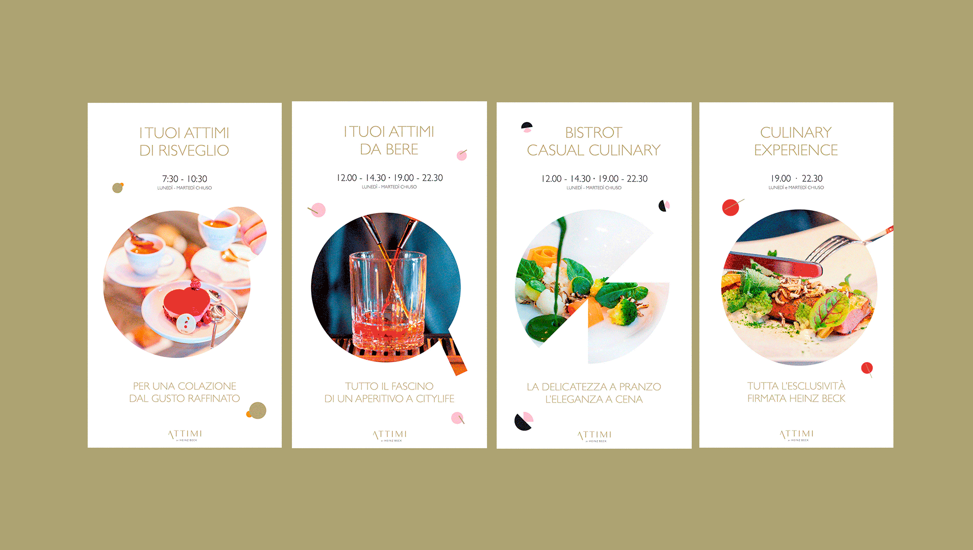 A dining experience crafted for travelers: the skill and flavors of a "three-star" cuisine in a fresh format, designed to meet all taste and timing needs. Four moments of the day, with menus of 20, 30, or 45 minutes. The art direction revolves around the concept of slowing down time: from the photographic mood capturing the "moments" to the balanced corporate shapes.